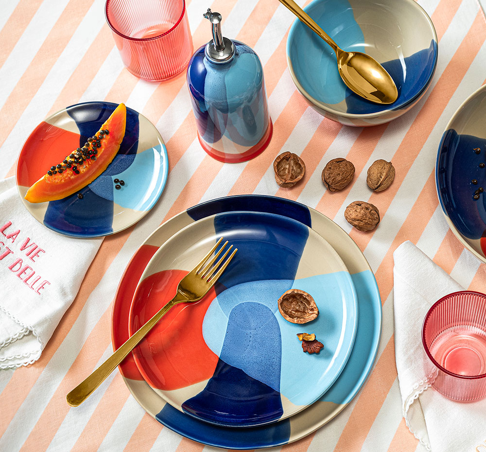 GIRO 32-teiliges Geschirrset, aus Steinzeug in Portugal gefertigt und handbemalt.