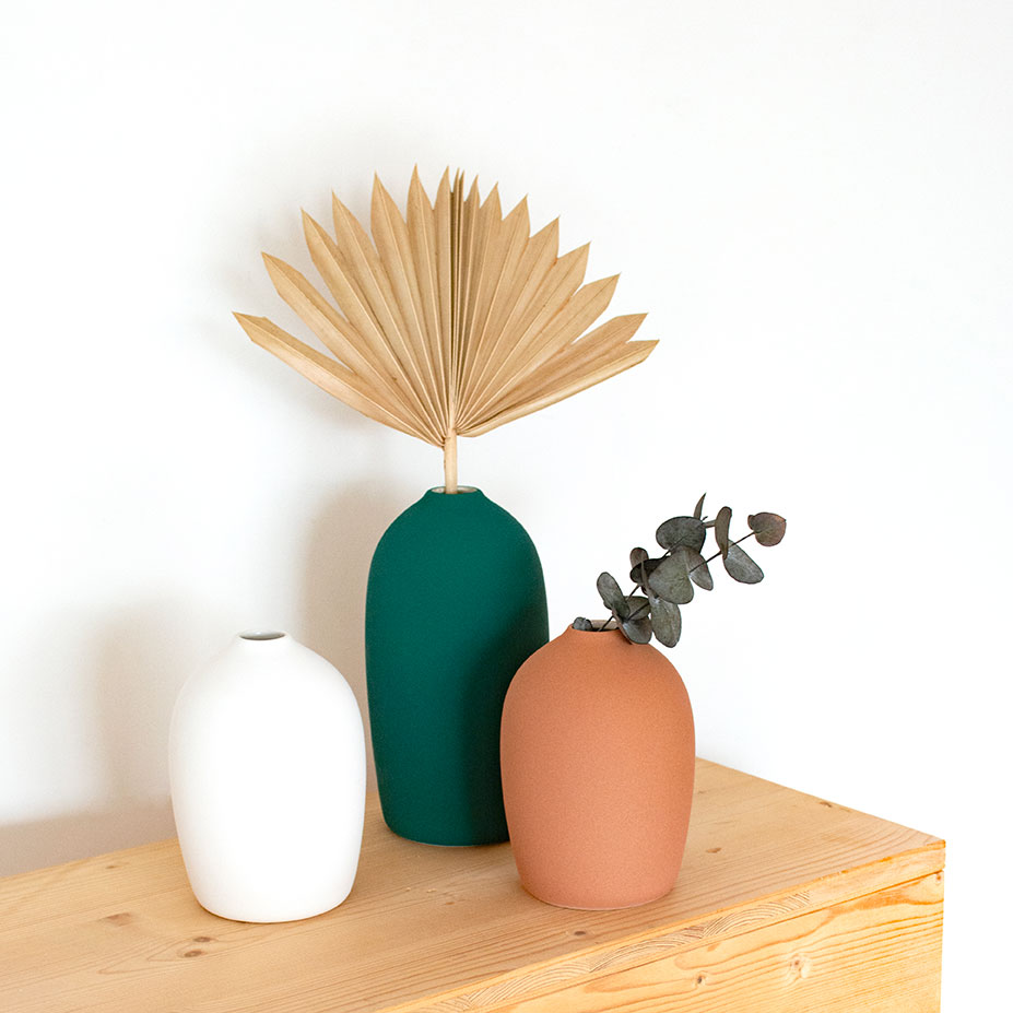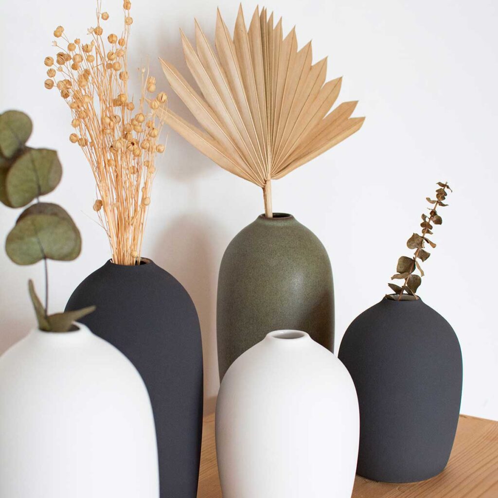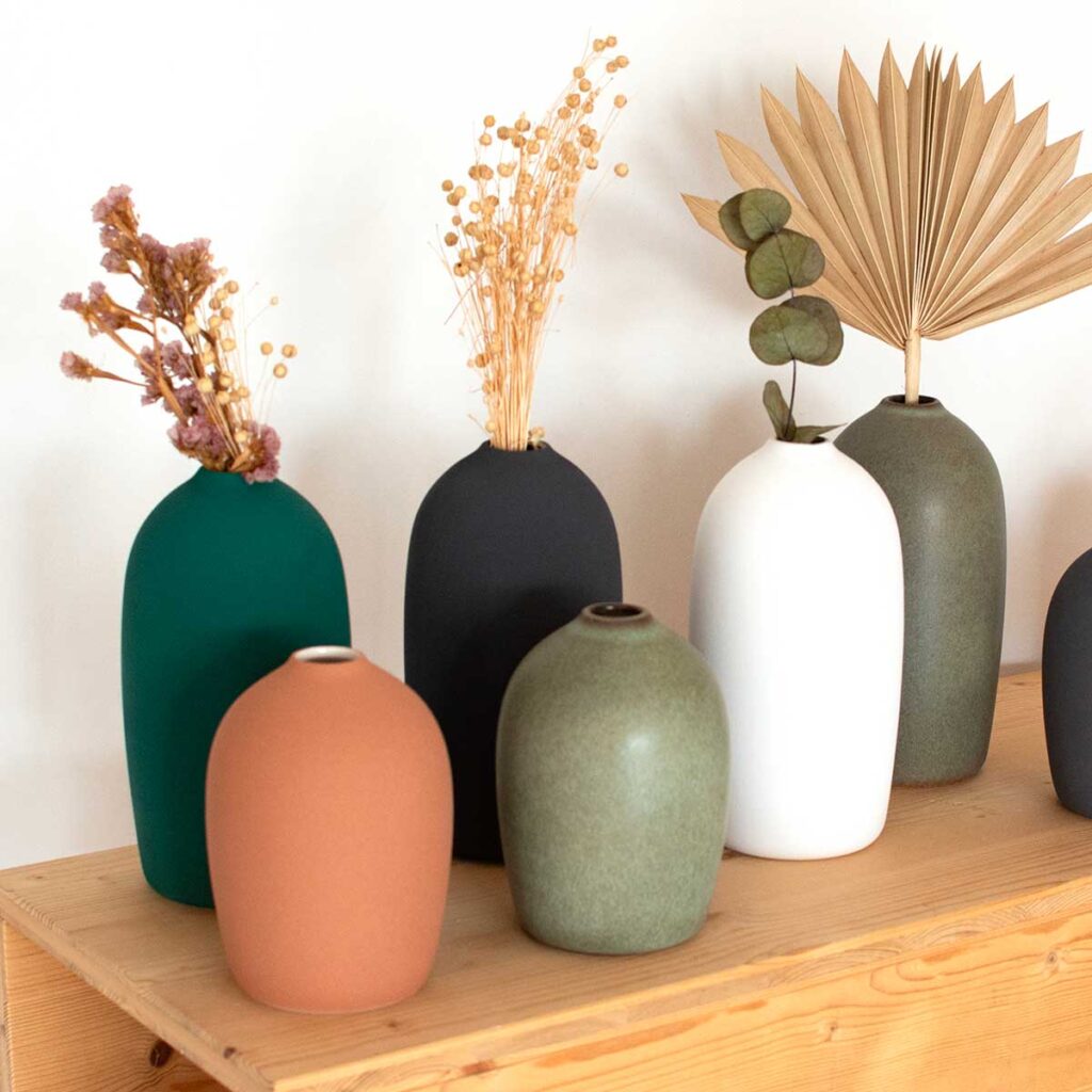 Erhältlich in zwei Größen können die Krüge aus der BIO-Kollektion als einfache Dekorationsobjekte oder mit Blumen verwendet werden.