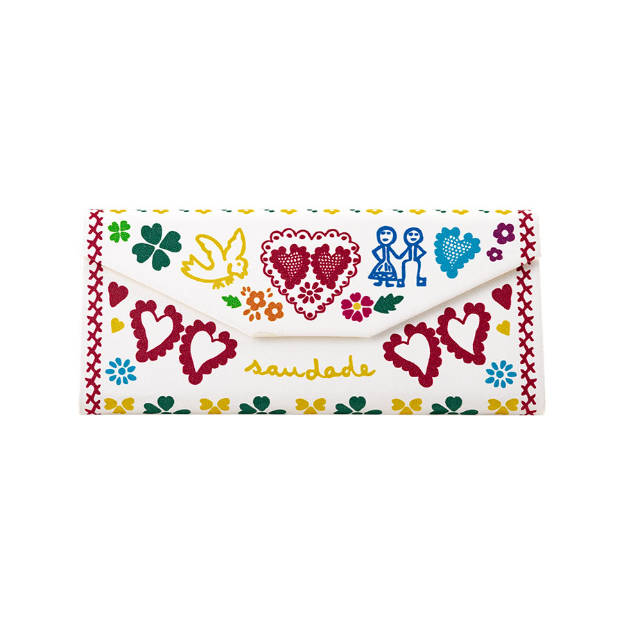 Eyeglass case NAMORADOS in synthetic leather with a pattern inspired by the “lenços dos namorados” or “lenços dos pedidos” (lovers’ handkerchiefs or proposal handkerchiefs).