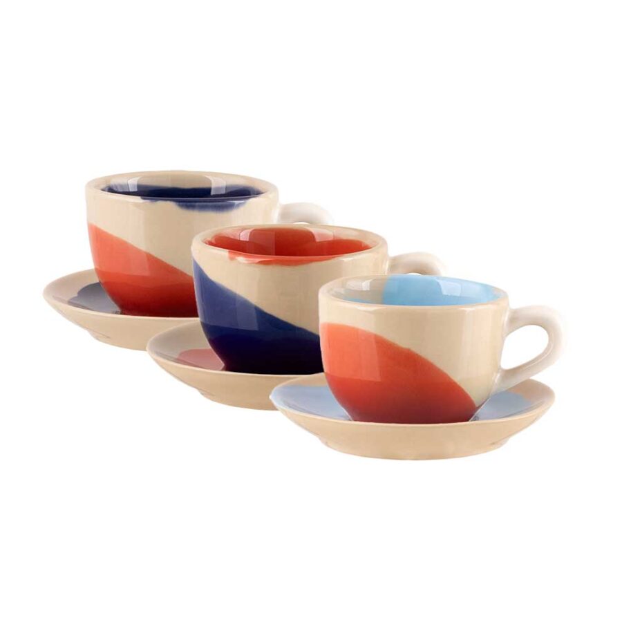 GIRO Espresso Cups and Saucers – set of 6 (comprising 6 cups and 6 saucers), with a capacity of 75ml, is perfect for serving coffee in company and enjoying the day, whether on the balcony, at home, or on the terrace. Hand-painted, made of stoneware ceramic. Manufactured in Portugal.