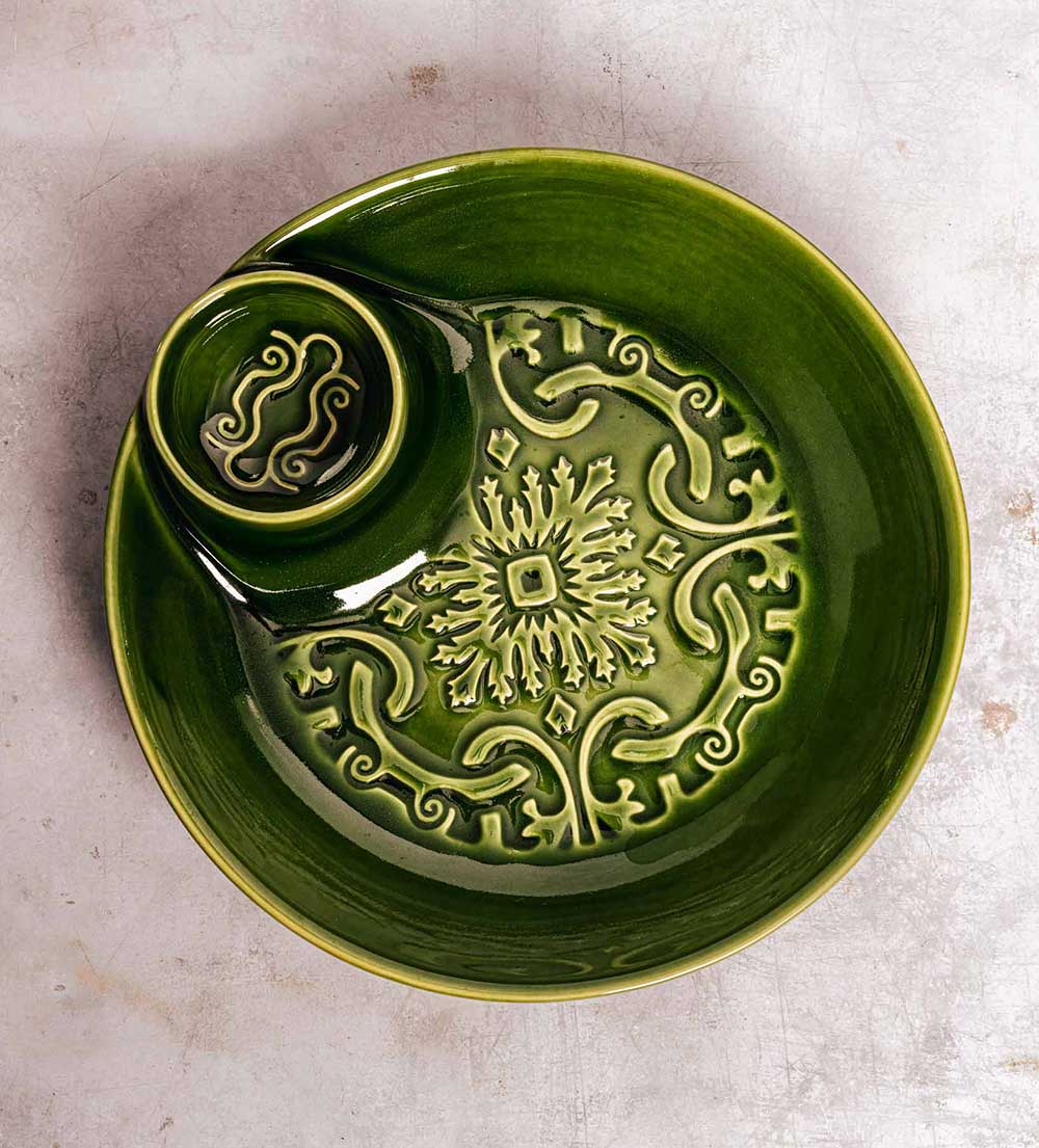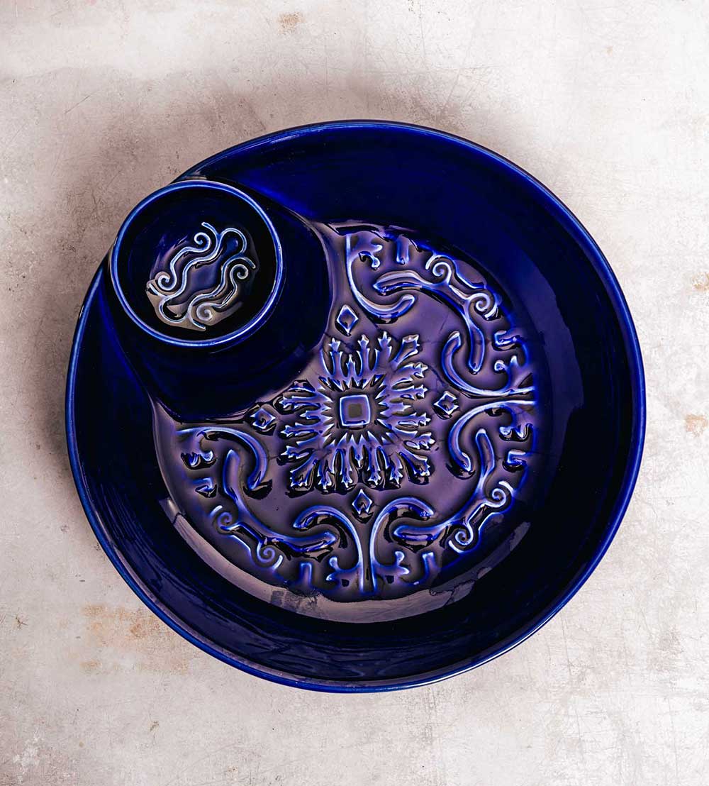 Producido artesanalmente en Portugal, este plato combina la resistencia del gres con el cuidado del trabajo manual, garantizando calidad, durabilidad y un acabado único. Disponible en cuatro colores — azul, blanco, verde y ocre —, se adapta fácilmente a diferentes estilos de mesa y decoración, aportando color y encanto a tus momentos de compartir.