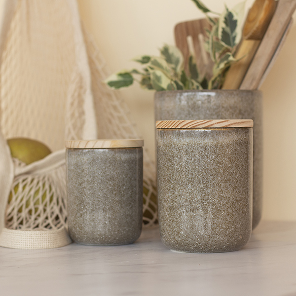 Avec la collection GRANO, votre cuisine est toujours bien rangée ! D’un design simple, les pots de cuisine Grano sont idéaux pour garder chaque chose à sa place. Les couvercles, en pin portugais, sont dotés d’un joint en silicone pour conserver les aliments plus longtemps, et de céramiques aux finitions étonnantes. Faciles à nettoyer et à ranger, les bocaux Grano peuvent être mis directement dans la machine à laver (ne pas mettre le couvercle !). Découvrez les tailles et les couleurs qui vous conviennent le mieux. Cª Atlântica est synonyme de design, de fonctionnalité et de qualité, fabriqué au Portugal.