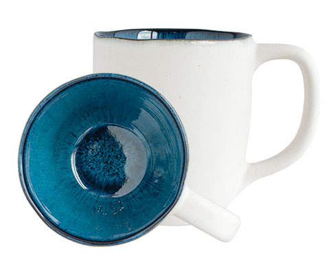 Des pièces finies à la main, d’un blanc mat à l’extérieur et de couleurs vives à l’intérieur.