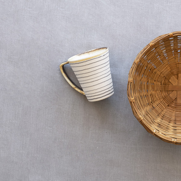 Caneca 350ml estilo boho, produzido em grés, uma cerâmica robusta ideal para o uso diário. Decorada à mão, com esmaltes reativos, o que torna cada peça única. Produzido localmente em Portugal.