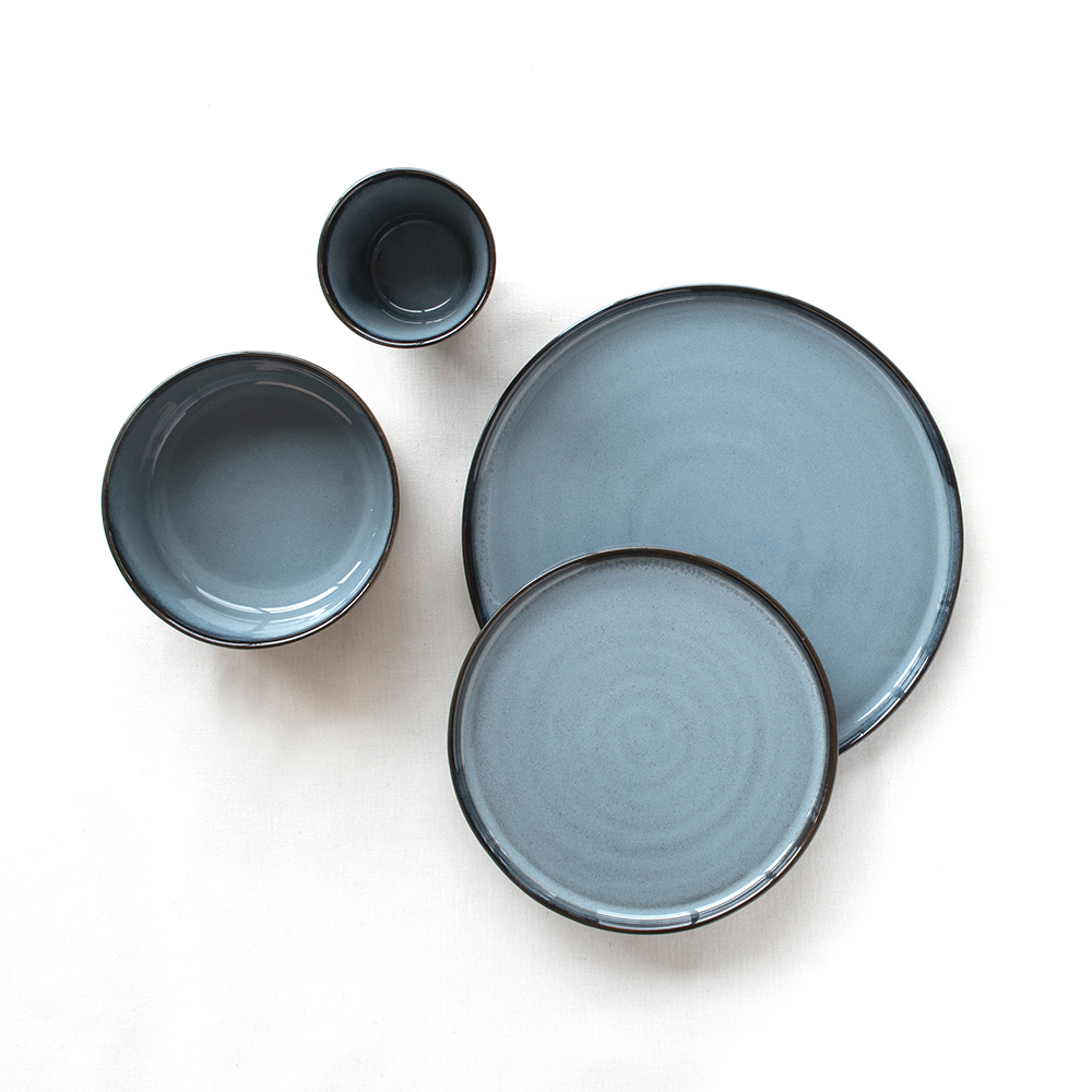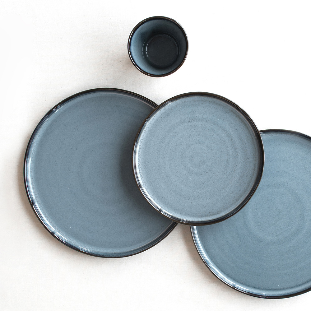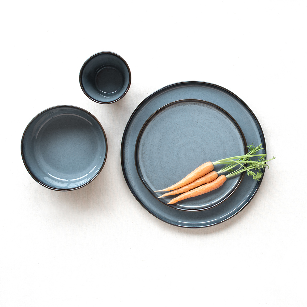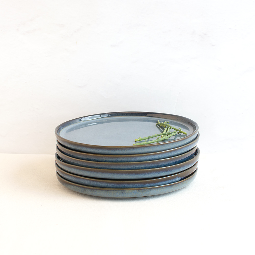 Prato de salada em grés fino de elevada qualidade e decorado à mão com vidrado reactivo que confere singularidade a cada peça.
