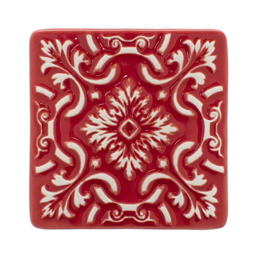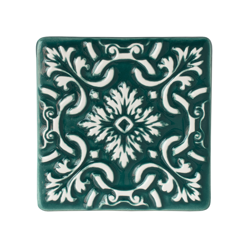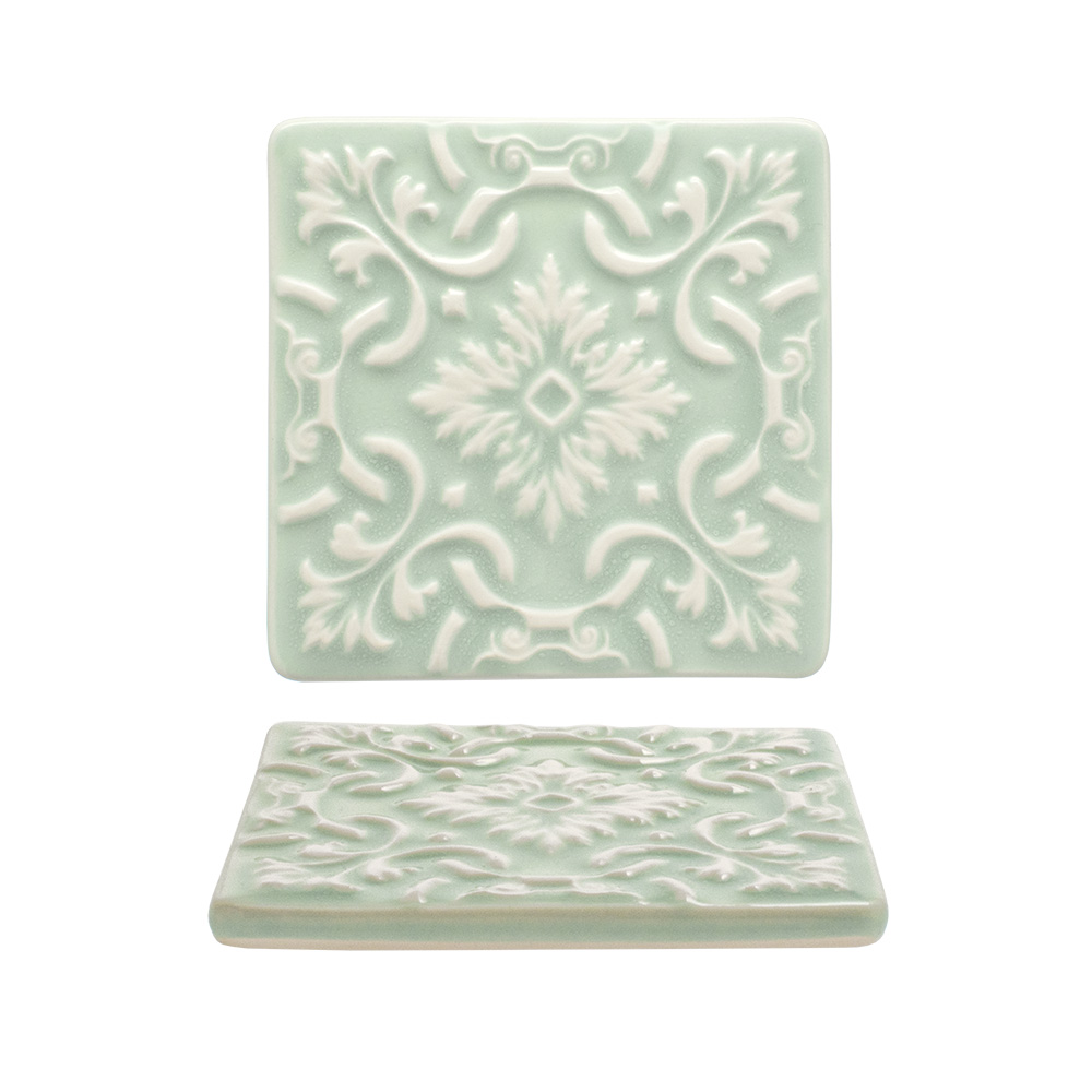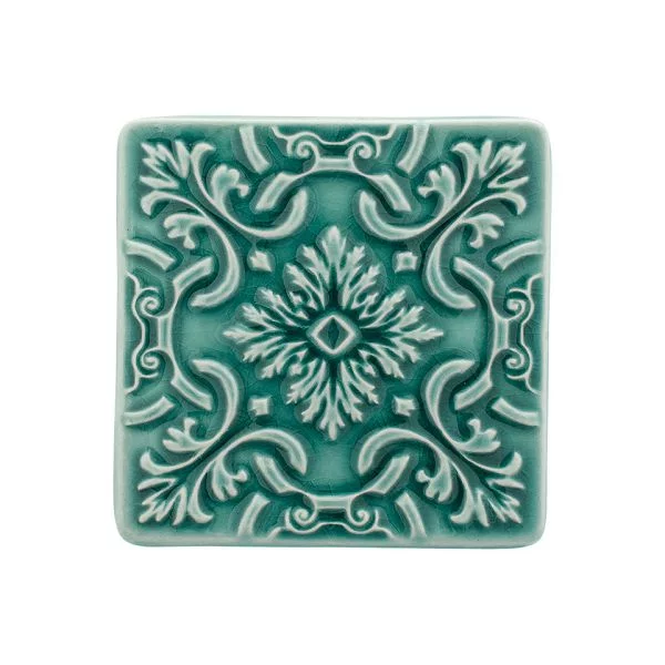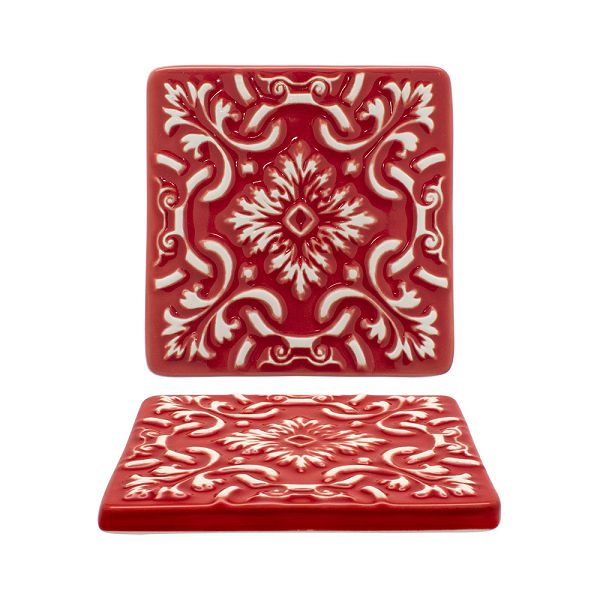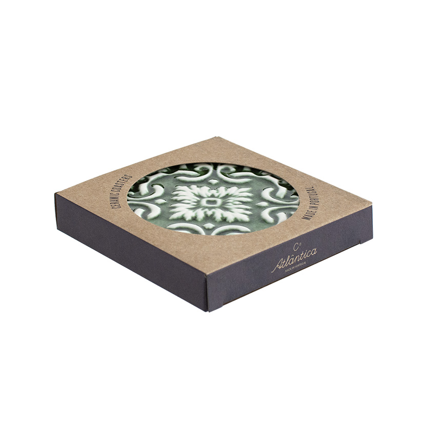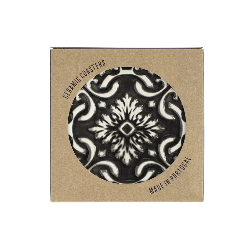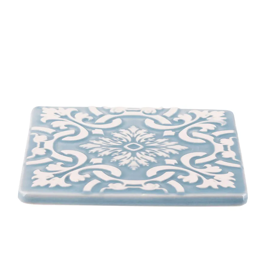 Para além do relevo, inspirados no azulejo português, estas bases de copos têm um acabamento à mão em vidrado reativo.