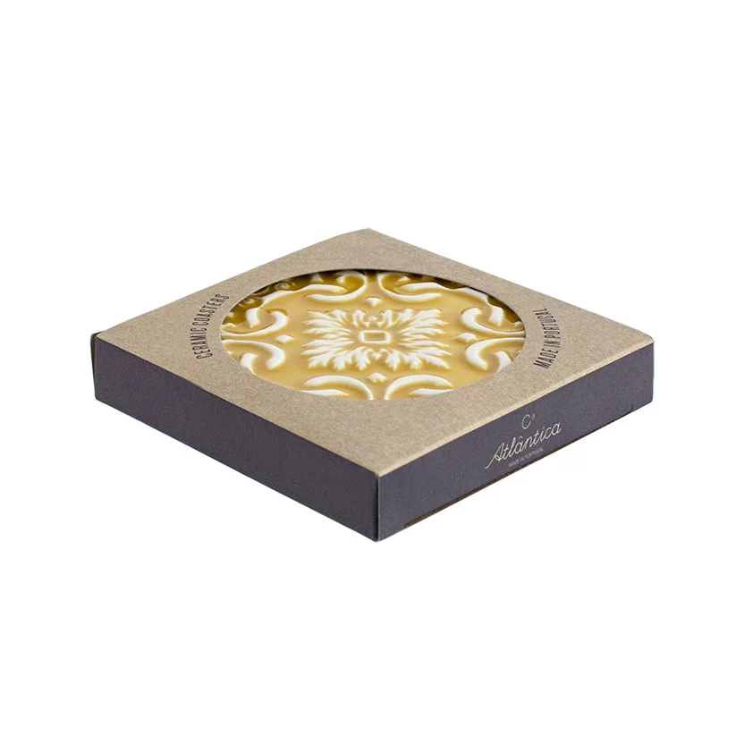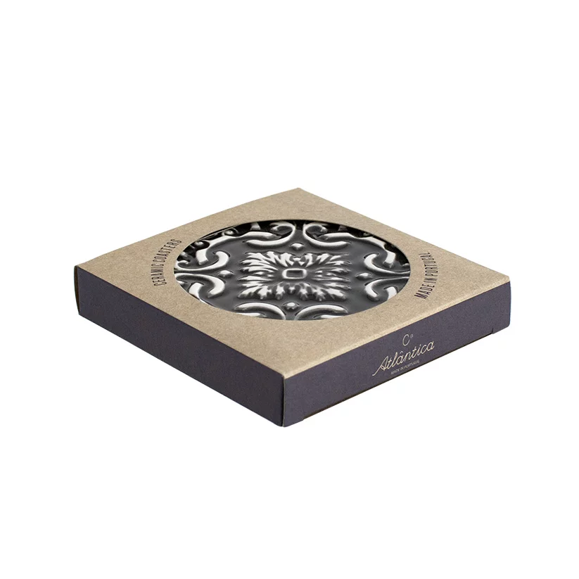 A inspiração para o relevo das bases de copo, veio do azulejo português.