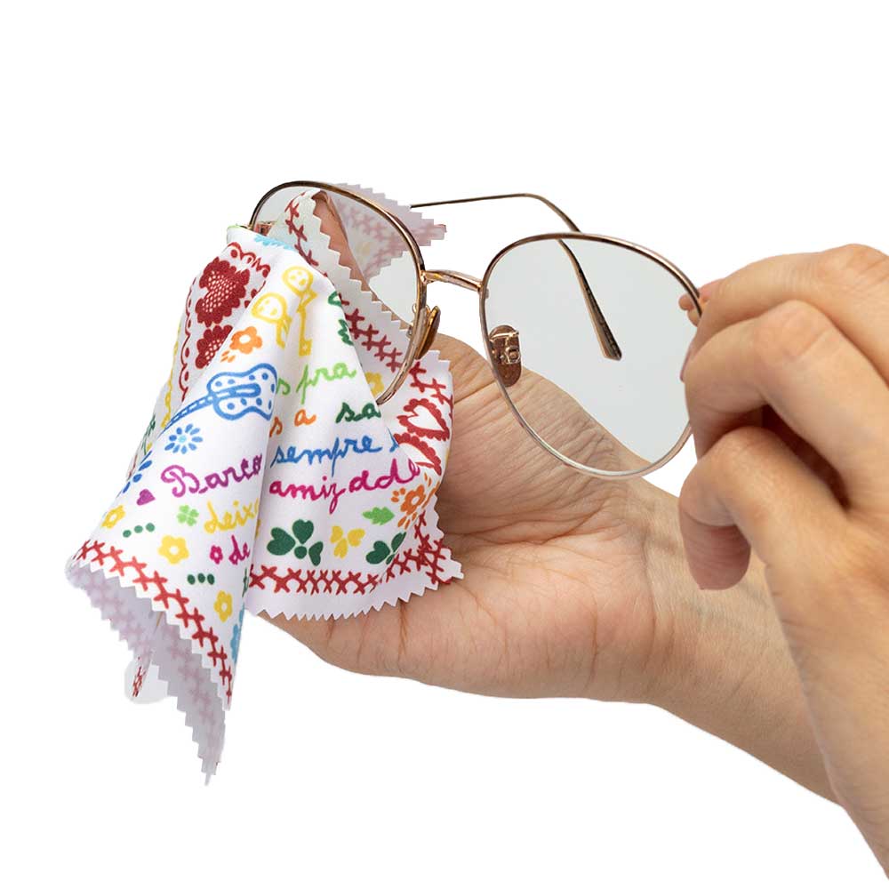 Além do seu visual deslumbrante, este pano microfibra também oferece uma experiência tátil luxuosa, graças à microfibra com toque aveludado. Ideal para limpeza de ecrãs, como smartphones; smarthwatches e tablets, assim como de óculos. Adicione à sua compra a Caixa de óculos NAMORADOS a condizer com o pano 😉